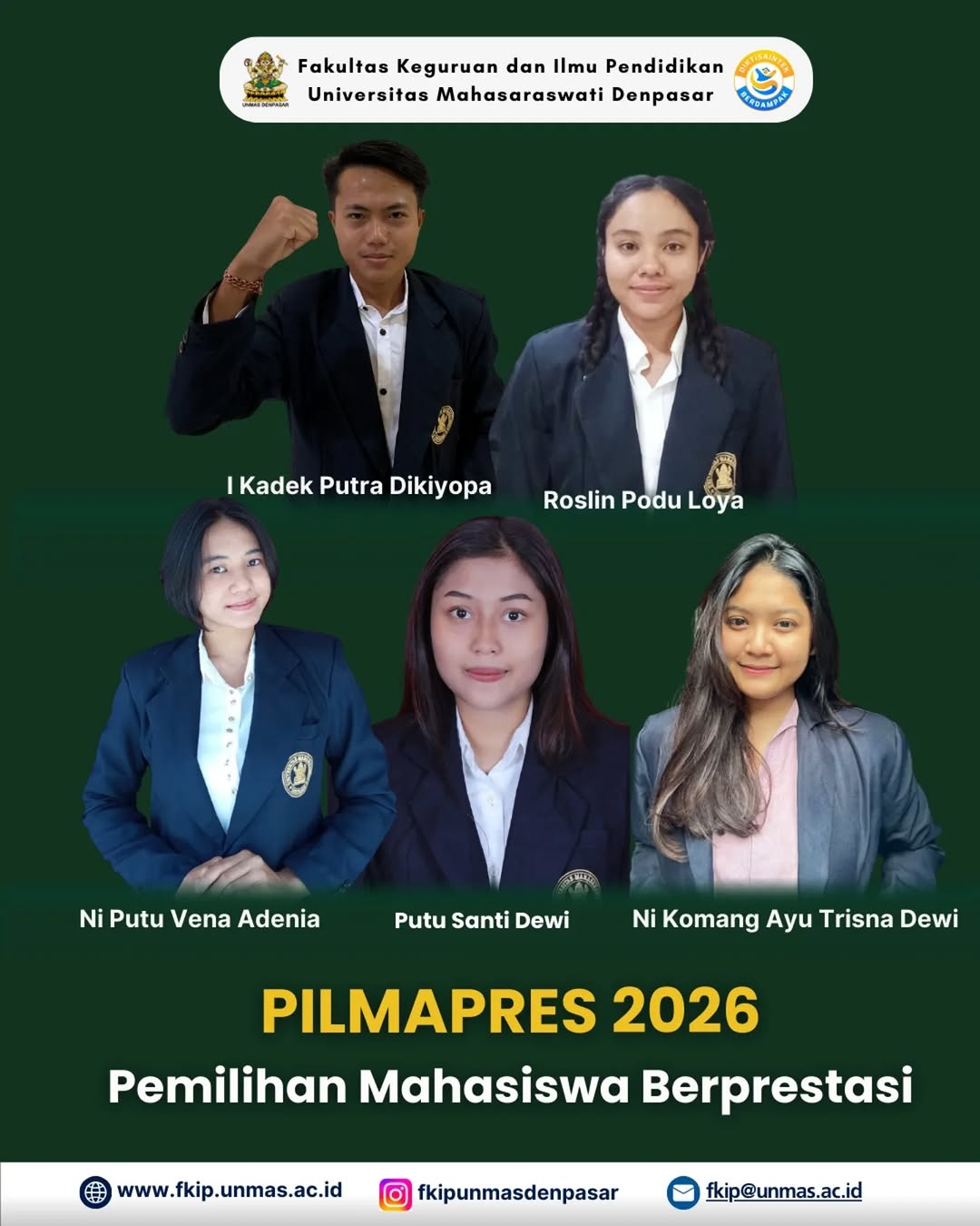 PILMAPRES FKIP UNMAS DENPASAR 2026: THE FINALISTS Hello Sobat FKIP!Inilah wajah-wajah muda...
