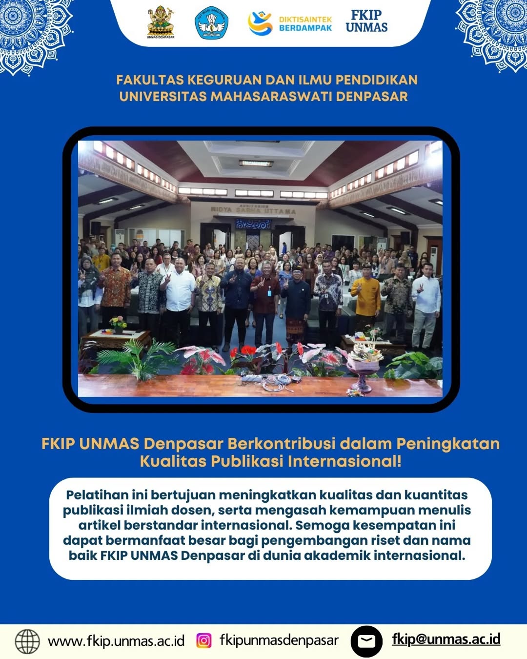 #FKIPUNMAS #UNMASDenpasar #PelatihanPublikasiInternasional #ArtikelIlmiah #DosenBerprestasi