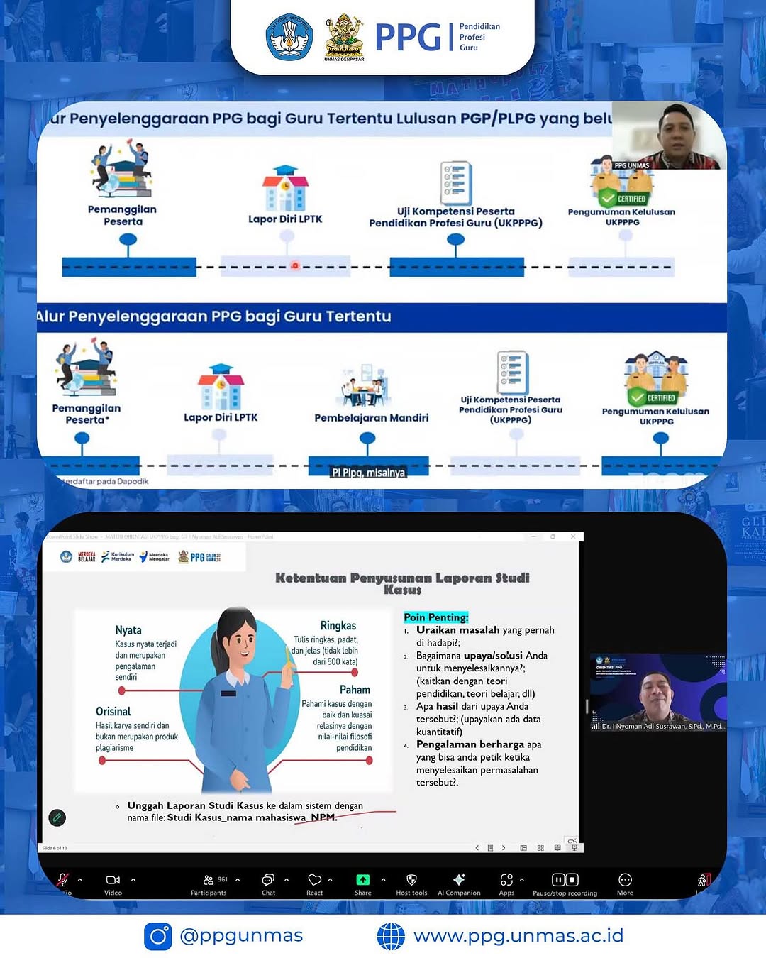 Pemateri ketiga Dr. I Nyoman Adi Susrawan, S.Pd., M.Pd. yang menyampaikan materi tentang ini pelaksanaan UKPPPG, khususnya pelaksanaan UKIN, penyusunan Studi kasus dan juga pelaksanaan UTBK.