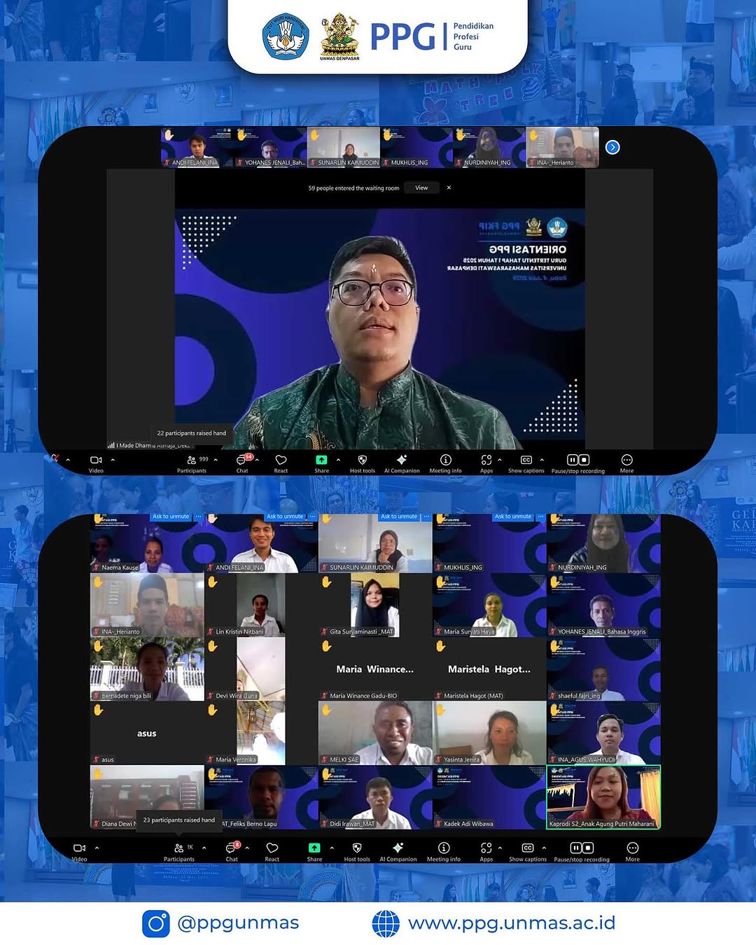 Rabu, 4 Juni 2025 Prodi PPG @fkipunmasdenpasar melaksanakan kegiatan Orientasi Akademik untuk mahasiswa Guru Tertentu Tahap 1 Tahun 2025. Pada tahap ini, Prodi PPG @fkipunmasdenpasar menerima 1373 mahasiswa yang sudah lapor diri dan dinyatakan diterima atau ditetapkan sesuai dengan SK Rektor No K.1423/C.13.02/Unmas/VI/2025.