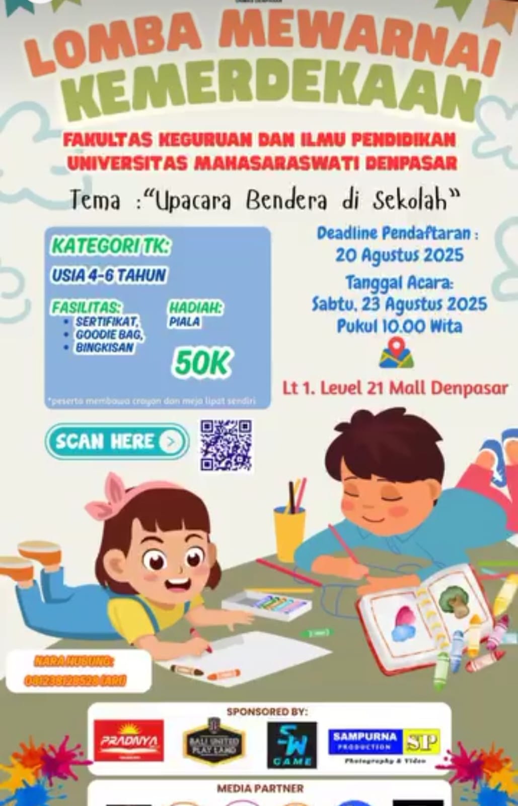 Yuk, dukung dan daftarkan putra-putri nya di Lomba Mewarnai Kemerdekaan!Tema: Upacara Bendera di...