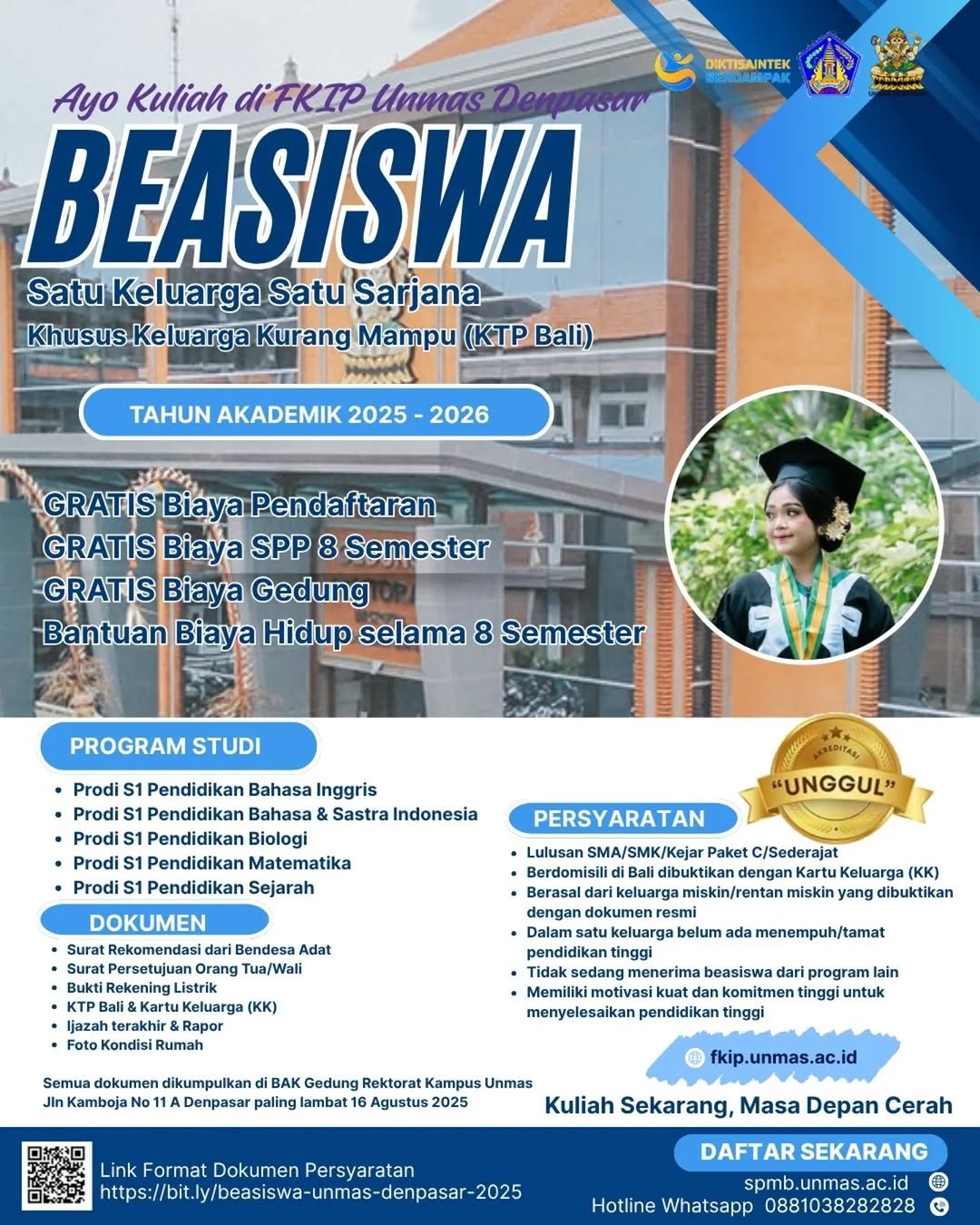 "Saatnya wujudkan mimpi! 💫 FKIP Unmas Denpasar membuka peluang lewat Program Beasiswa Satu...