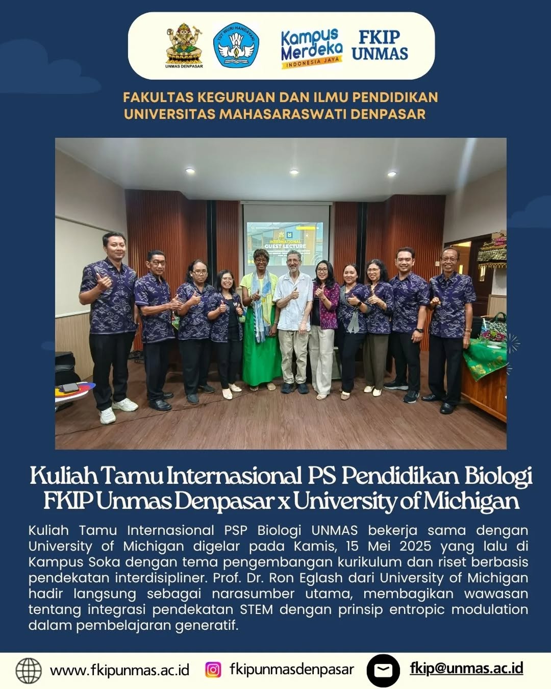 Kuliah Tamu Internasional PSP Biologi UNMAS x University of Michigan📍 Kamis, 15 Mei 2025 |...