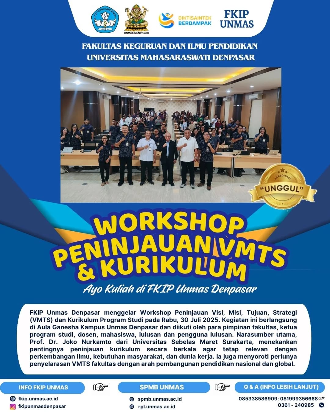 FKIP Unmas Denpasar Gelar Workshop Peninjauan VMTS dan Kurikulum Bersama Prof. Dr. Joko...