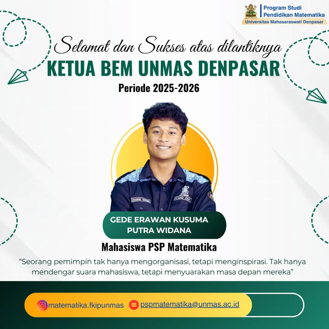 Selamat dan Sukses kepada Gede Erawan Kusuma Putra Widanamahasiswa Pendidikan Matematika, atas...
