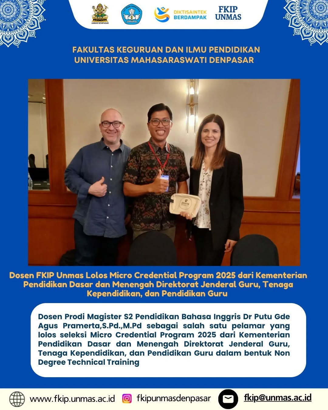 DOSEN FKIP UNMAS LOLOS SELEKSI PROGRAM MICRO CREDENTIAL 2025 Sebuah kebanggaan besar! Kami...